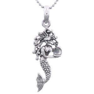 Silver Mermaid Charm Pendant Adorable Ornate Pattern