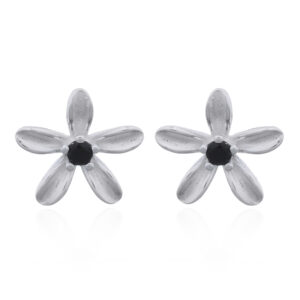 Black Enamel Flower 925 Sterling Silver Huggie Hoop Earrings
