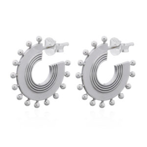 Name: Beaded Circle Wheel In Silver Stud Earrings SKU: 18526 Material: 925 Sterling Silver Finish: High Polish Weight: 6.5 g Dimensions (WxHxD): 2 × 23 × 24 mm IN-STOCK MOQ: 2 OUT-OF-STOCK MOQ: 10