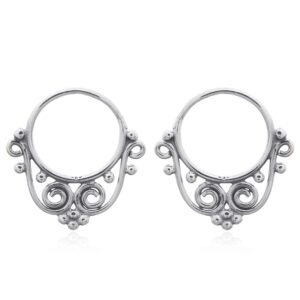 Name: Tribal Unique Silver Hoops Earrings Bead Clusters SKU: 13974 Material: 925 Sterling Silver Finish: High Polish Weight: 4.5 g Dimensions (WxHxD): 30 × 30 × 1.2 mm IN-STOCK MOQ: 2 OUT-OF-STOCK MOQ: 10