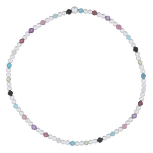 Precious Faceted Mix Stones With 925 Silver Stretchable Bracelet