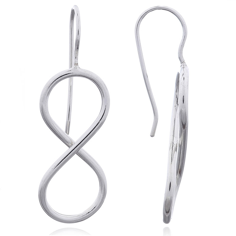 Sterling silver wire ear hooks soldered to the tops of one of the loops that make up the infinity symbol display a beautiful shine as well as the infinity symbols due to careful polish. The special infinity symbol stands for eternity empowerment and everlasting love all very popular themes that will surely appeal to many potential customers.