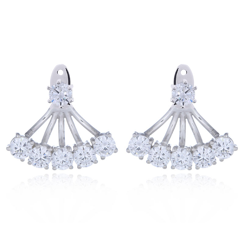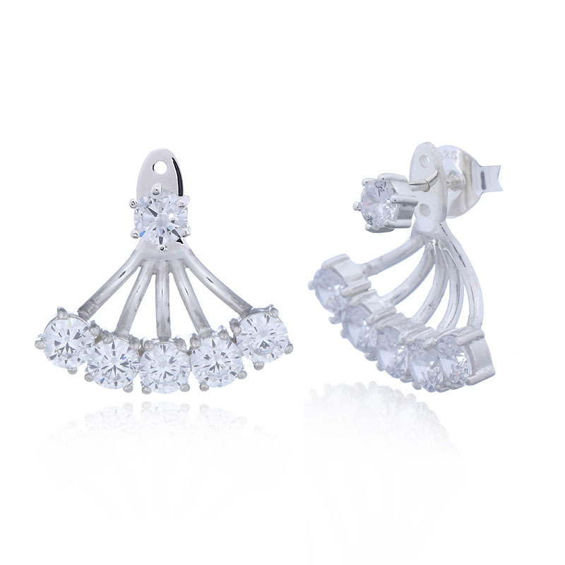 Five 5 mm round shaped Cubic Zirconia crystals are prong set on this pair of 925 silver swing studs. A lone 5 mm clear cubic zirconia stud can be worn by itself if desired.