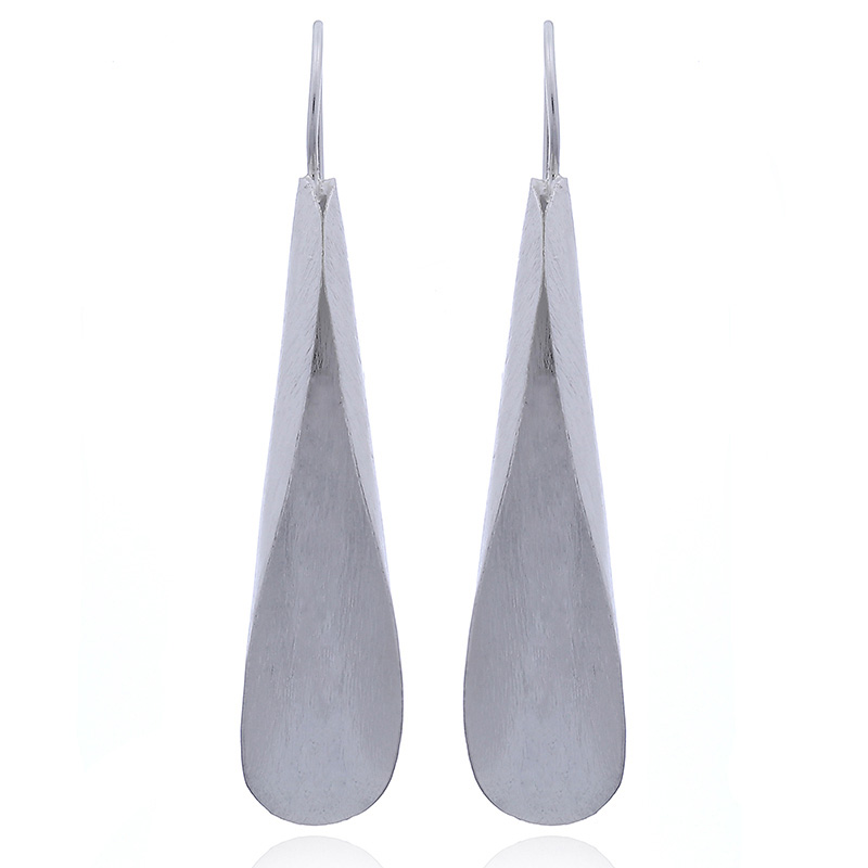 925 Sterling Silver Drop earrings feature large gorgeous concave drops creating an adorable elegant shape with curling outwards sides at the tapered top. On fixed hooks these silver Drop earrings add a superb silver luster standing out with the brushed finish surface that brings a striking impulse to the looks. Trendy Hallmarked 925 Sterling Silver jewelry that embellishes women with a high fashion pair of earrings.