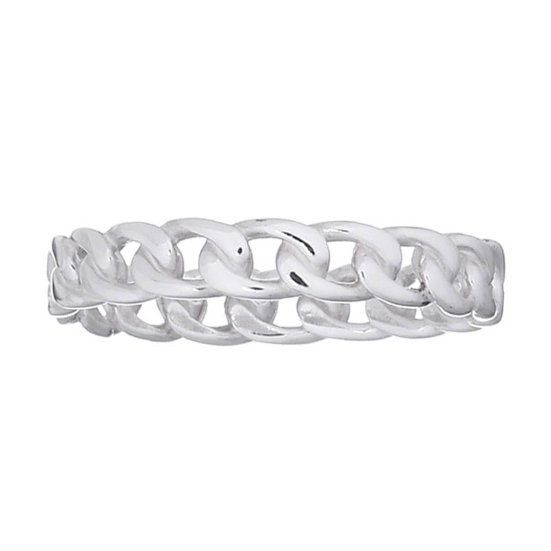 The flat curb chain linked design of this ring adds a touch of sophistication to any collection. A versatile piece that can appeal to both men and women, making it perfect for retailers looking to attract diverse customers. Ideal for everyday wear or special occasions.
