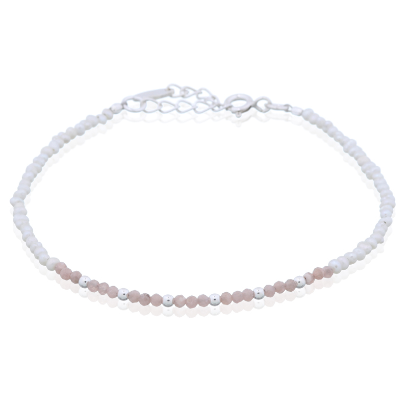 Add a touch of elegance and sophistication to your outfit with this stunning bracelet. This bracelet features natural rhodonite beads, freshwater pearls, and 925 sterling silver accents. Rhodonite is a stone of compassion, balance, and healing. Freshwater pearls symbolize purity, harmony, and wisdom. This bracelet is handmade with care and attention to detail. It includes a 3 cm extension to fit most wrist sizes.