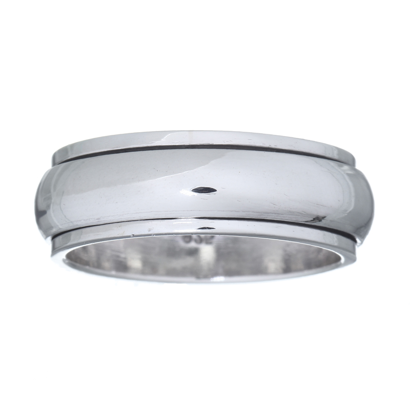 With a larger profile, this high-polished spinning dome band ring adds a bold touch to any jewelry collection. Perfect for customers seeking statement pieces, it combines elegance with a contemporary flair.