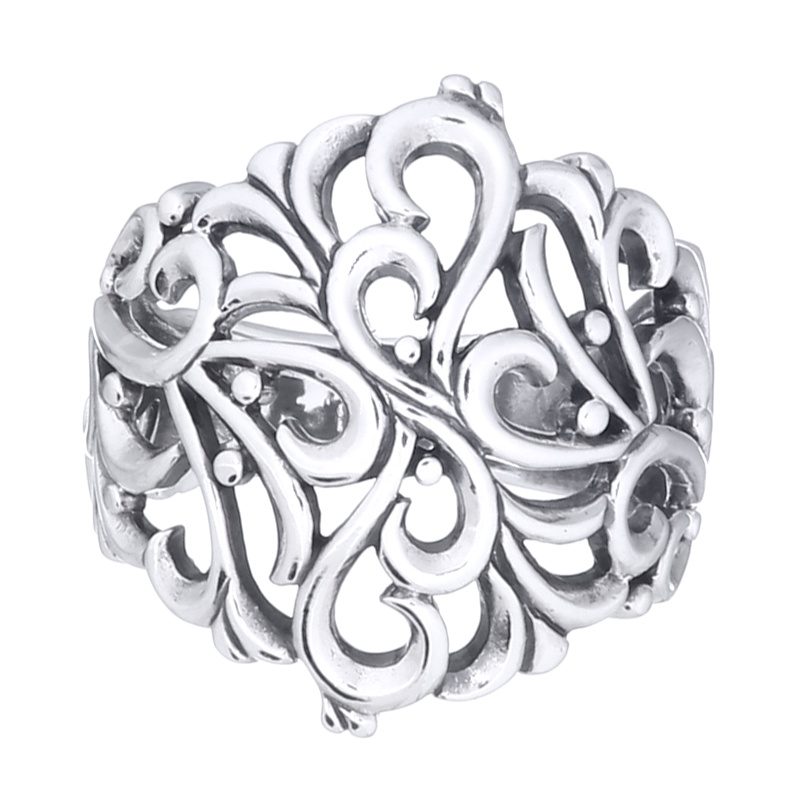 Featuring an ajoure intertwined floral design, this silver ring captures the beauty of nature. Retailers can appeal to customers looking for unique, feminine pieces that express their individuality and love for flowers.