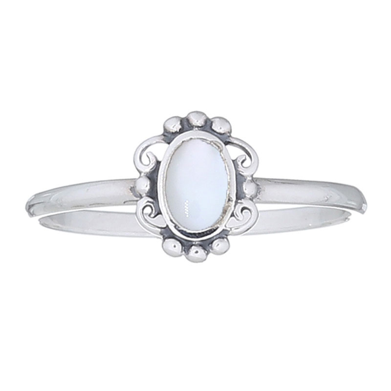 Featuring a mirror finish with antiqued mother of pearl, this vendor ring is a luxurious statement piece. Retailers will find it appealing to customers looking for high-quality, unique jewelry that stands out in any setting.