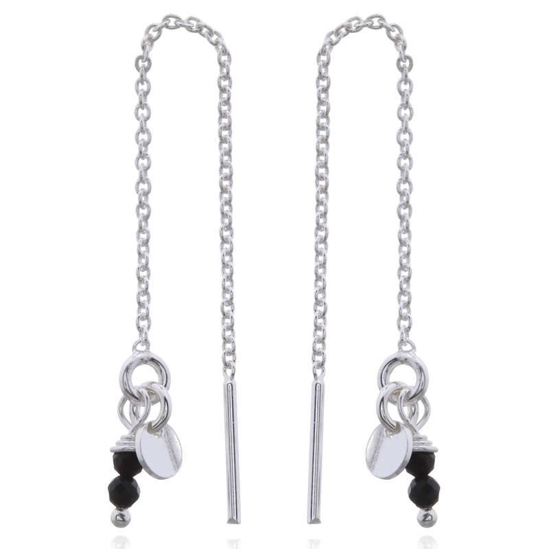 Enhance your collection with black agate bead threader earrings, complete with a stylish tag. Their sleek design adds a touch of sophistication. Benefit from our competitive wholesale prices for better profit margins.
