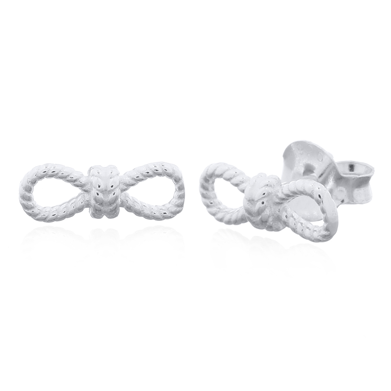 Offer a delightful accent with these 925 sterling silver studs. The intricate rope design is crafted into a delicate bow shape, providing texture and classic femininity. A charming, high-quality staple for your retail inventory.