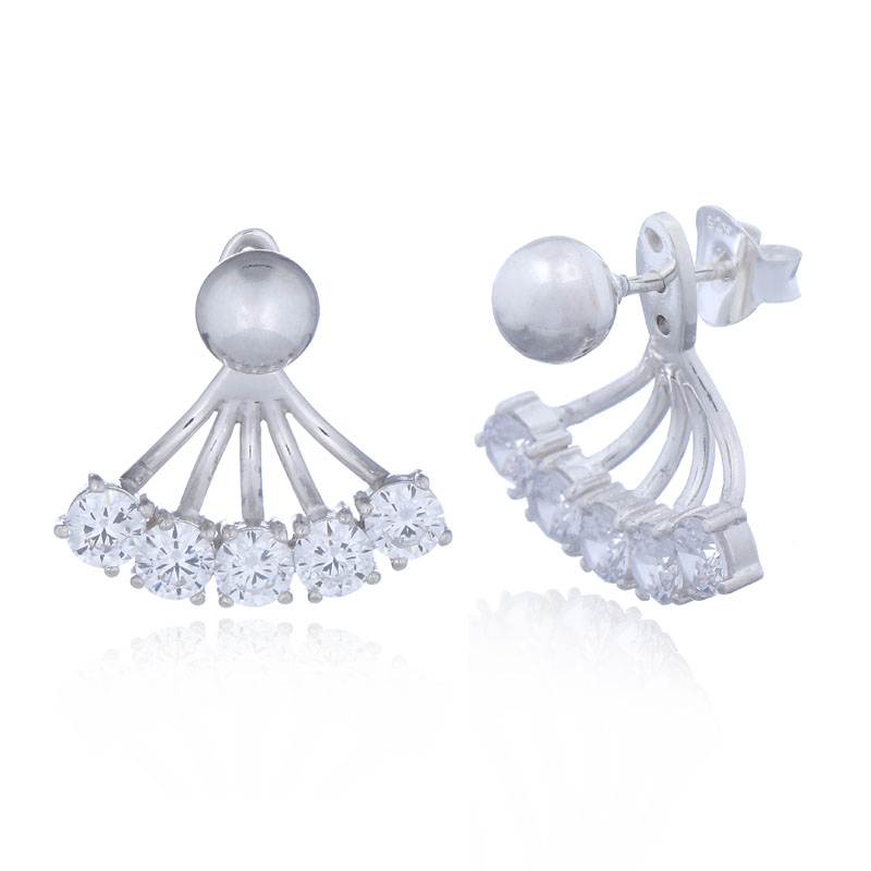 Five 4mm round shaped Cubic Zirconia crystals carefully curved and matched with 6mm polished silver ball studs.