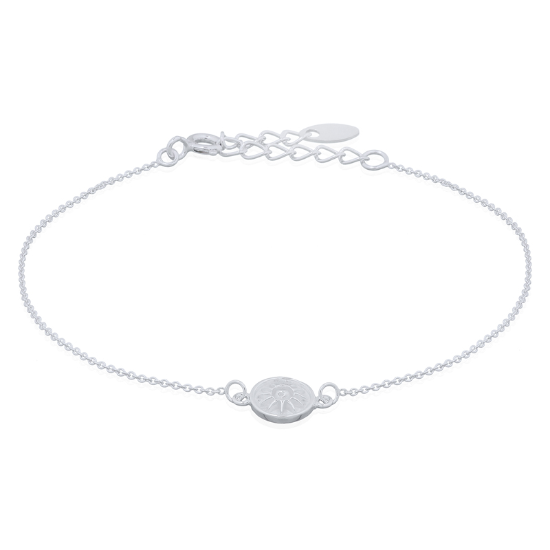 Radiate sunshine with this dainty bracelet featuring sun rays in a disc design. Ideal for your inventory, it appeals to customers who appreciate unique, symbolic pieces that convey positivity and warmth in their jewelry choices.
