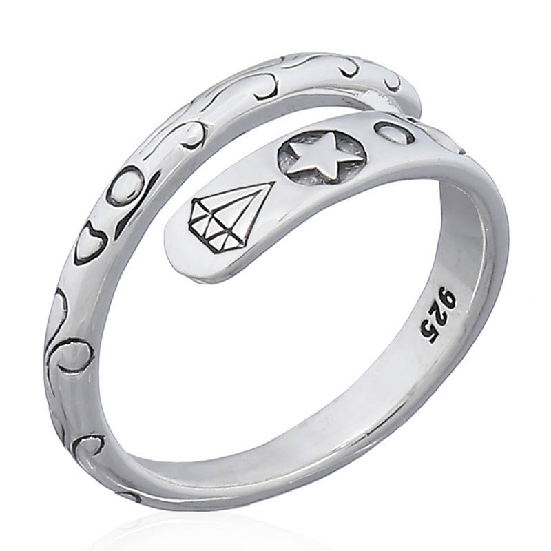 925 Silver Adjustable Ring Diamond, star and wind stamping.
