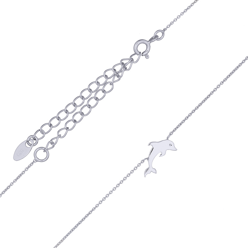Dive into the charm of this dolphin necklace, symbolizing playfulness and freedom. Its exquisite design and durable chain make it a must-have for jewelry lovers. This piece appeals to ocean enthusiasts and serves as a conversation starter for your customers.