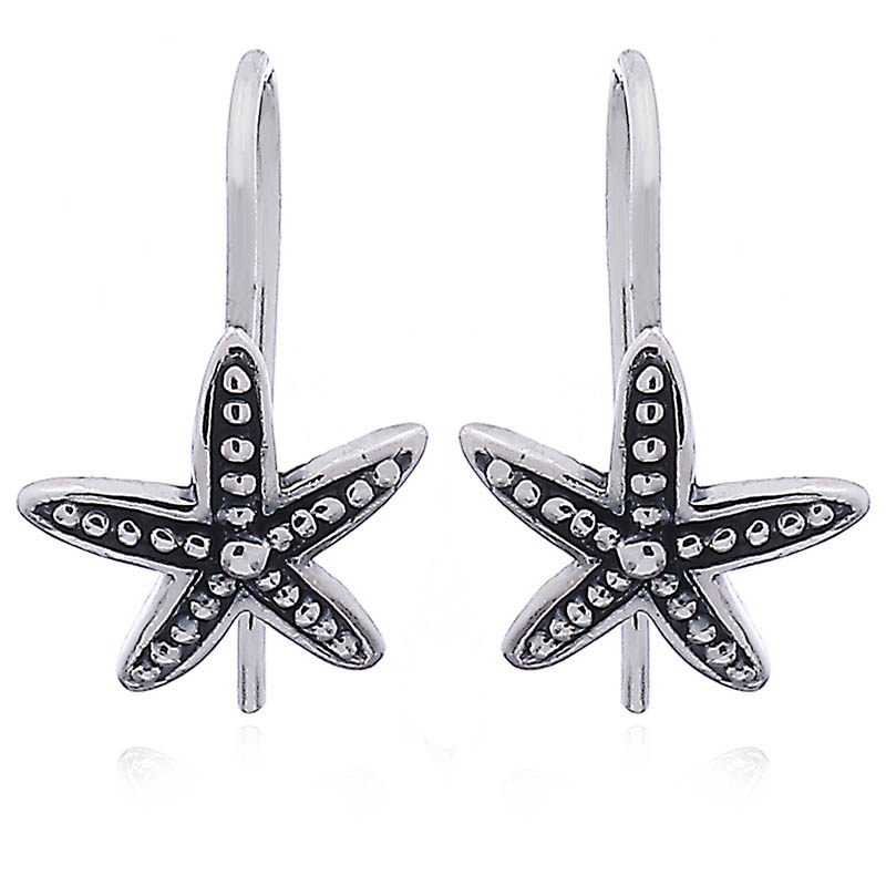 Beautifully crafted silver sea star earrings showing a number of shiny silver dots along the length of each of the 5 arms of the echinoderm. Excellent quality and finish these sea life earrings are a great investment.