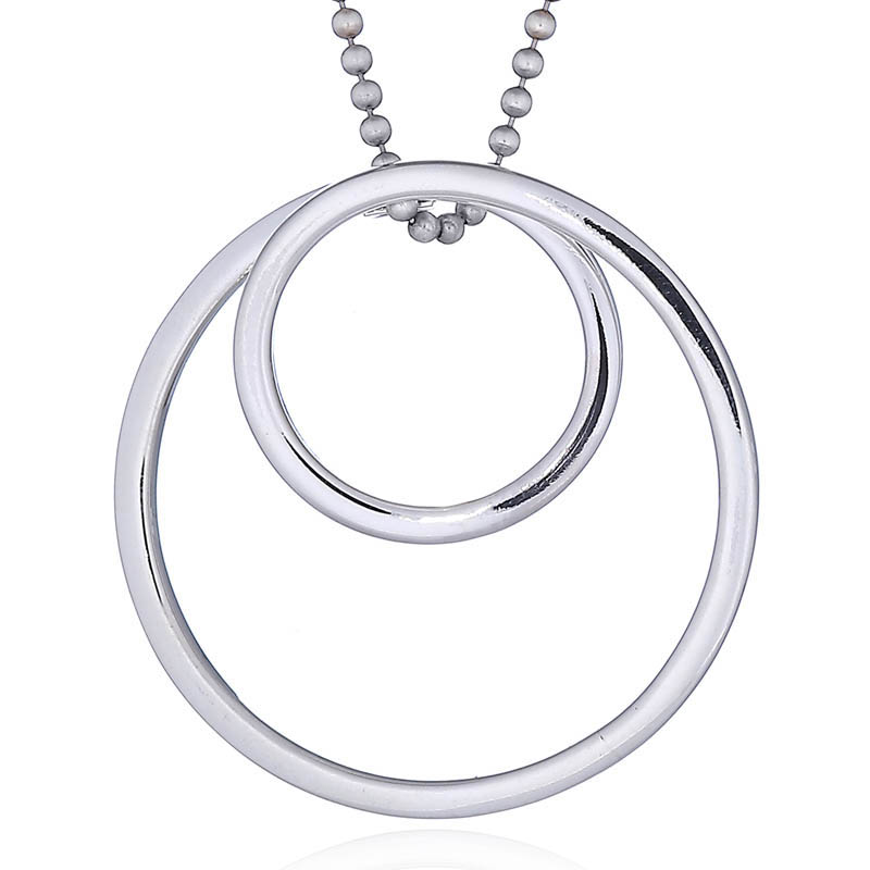 Modern minimalist shape made of sterling silver tube expertly bent into an overlapping circular structure. This 925 silver pendant it’s a functional piece of streamlined appearance.