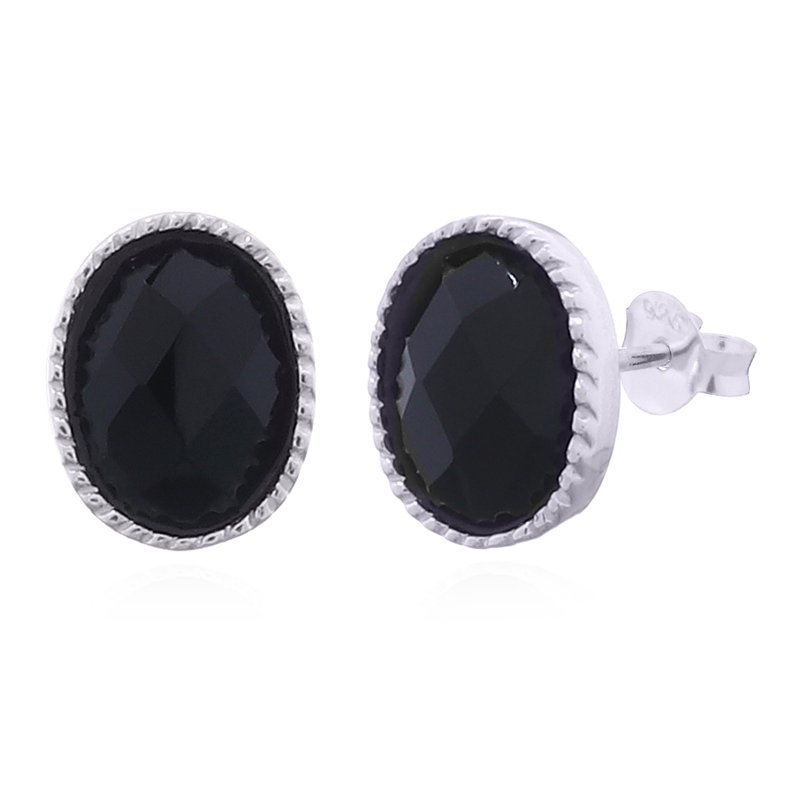 These stud earrings feature oval-shaped Black Agate set in smooth, serrated-edge 925 sterling silver bezels. Their sophisticated design offers retailers a unique blend of natural beauty and refined craftsmanship, perfect for customers seeking timeless statement pieces.