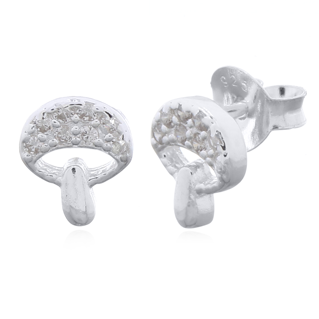 Charming 925 sterling silver mushroom stud earrings feature a whimsical cap adorned with tiny cubic zirconia for subtle sparkle. Lightweight, hypoallergenic, and perfect for everyday wear or curated ear looks, these studs help retailers attract trend-loving customers seeking cute, affordable statement pieces.
