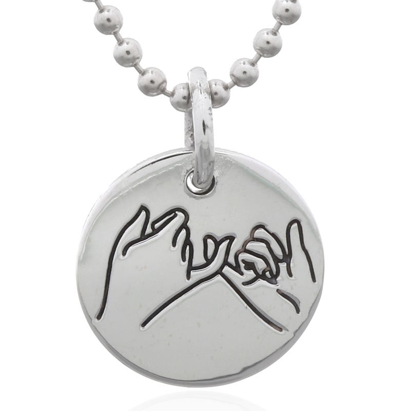 The engraved pinky promise pendant in 925 sterling silver symbolizes trust and friendship, making it a meaningful piece for customers seeking personal or giftable items. Retailers can offer this pendant to attract buyers looking for sentiment-driven designs.