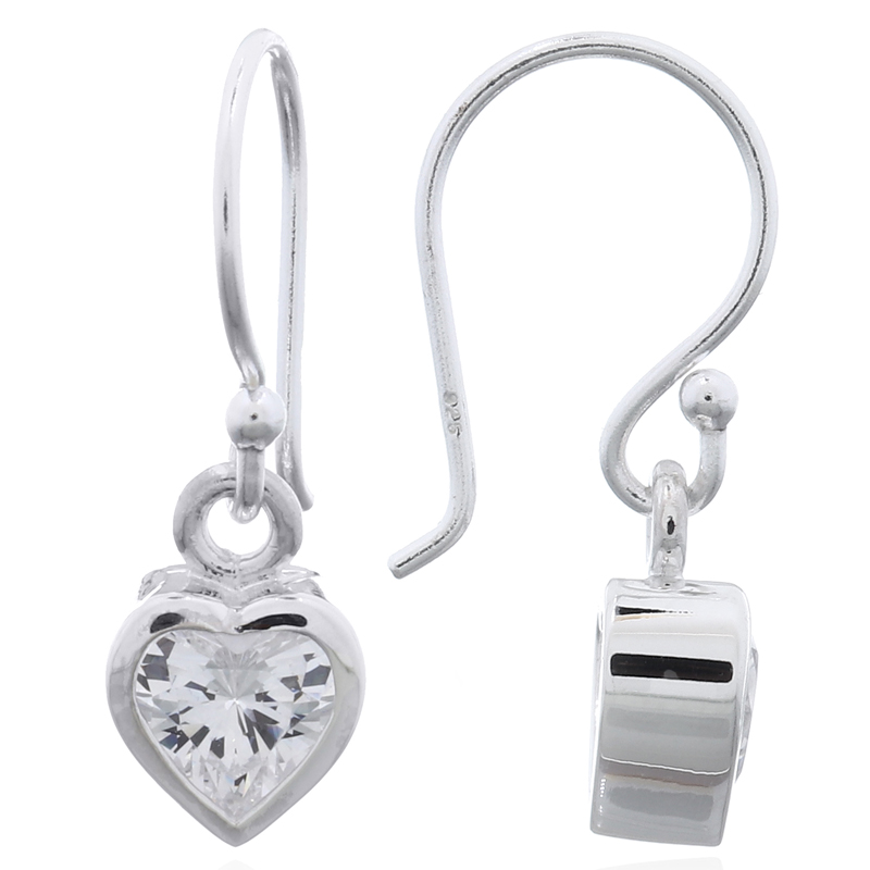 Elevate your collection with these stunning drop earrings. Crafted from genuine 925 sterling silver, each earring showcases an open heart design with a shimmering, perfectly placed Cubic Zirconia. Perfect for wholesale.