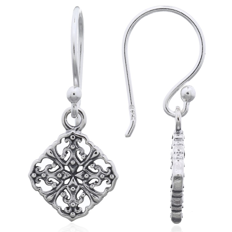 Intricate filigree work in a semi-diamond shape gives these dangle earrings a luxurious and timeless feel. Perfect for customers drawn to vintage-inspired designs, these earrings will make an elegant addition to any retail collection. A true showstopper!