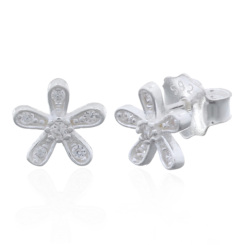 Featuring five petals and multiple clear CZ gemstones, these stud earrings radiate elegance and charm. Their classic floral design makes them perfect for any occasion. Stock these beautiful earrings to cater to customers seeking timeless and sophisticated accessories!