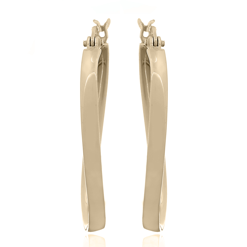 Gold plated twisted oval hoops provide a stylish and contemporary twist on classic hoop earrings. Perfect for a fashionable collection, they appeal to a broad audience. Benefit from our factory-direct pricing.