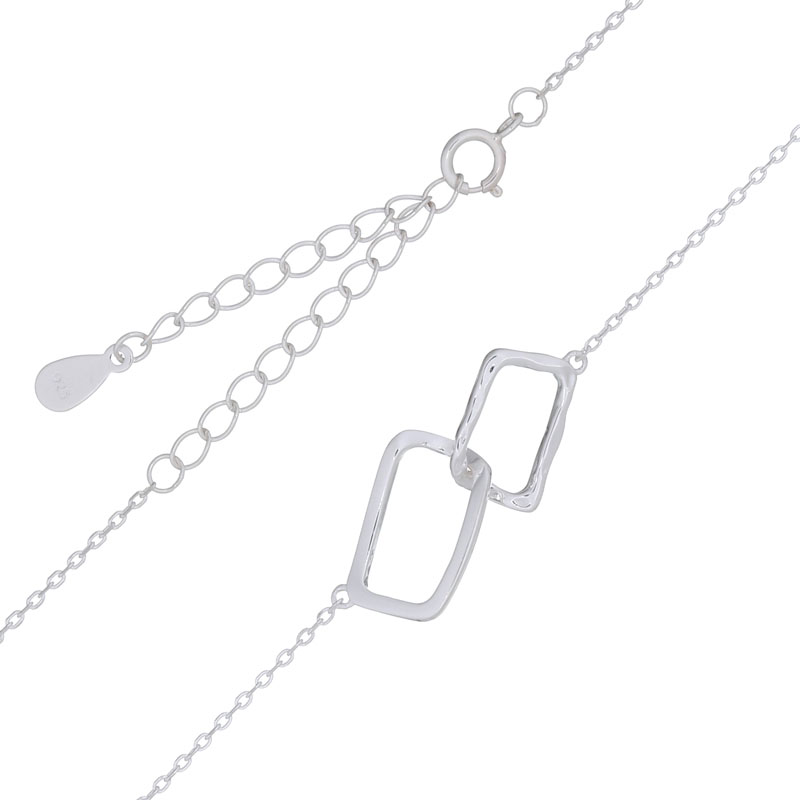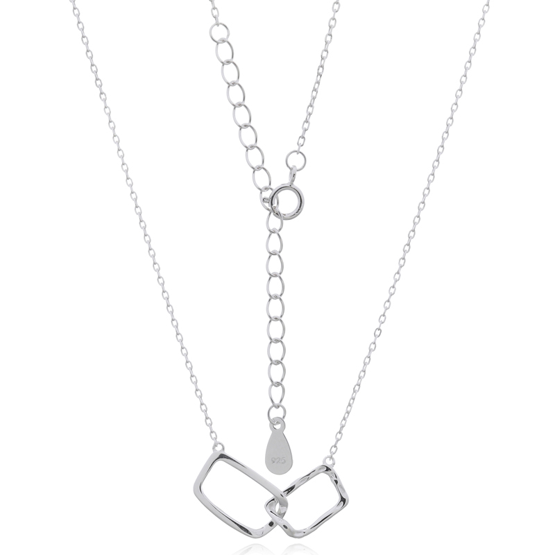This interlocking square pendant showcases modern design and sophistication. Retailers can attract customers looking for unique, geometric jewelry that adds a contemporary touch to their outfits, making it a versatile addition to any collection.