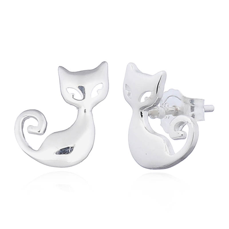 The kitty cat is sitting down in curly sexy shaped. It is displayed as earrings for ladies and girls. Also boys can wear on style.
