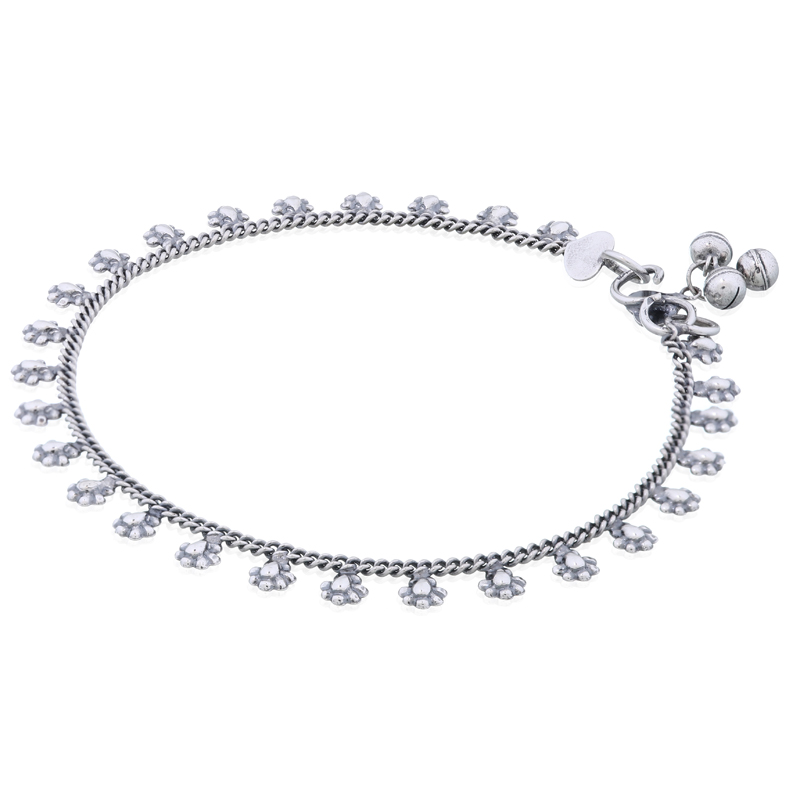 Featuring magnificent exotic flowers, this sterling silver anklet chain brings a touch of nature-inspired beauty to your collection. Its intricate design is perfect for retailers looking to offer bohemian, floral-themed jewelry. An eye-catching addition for customers who value detailed craftsmanship.