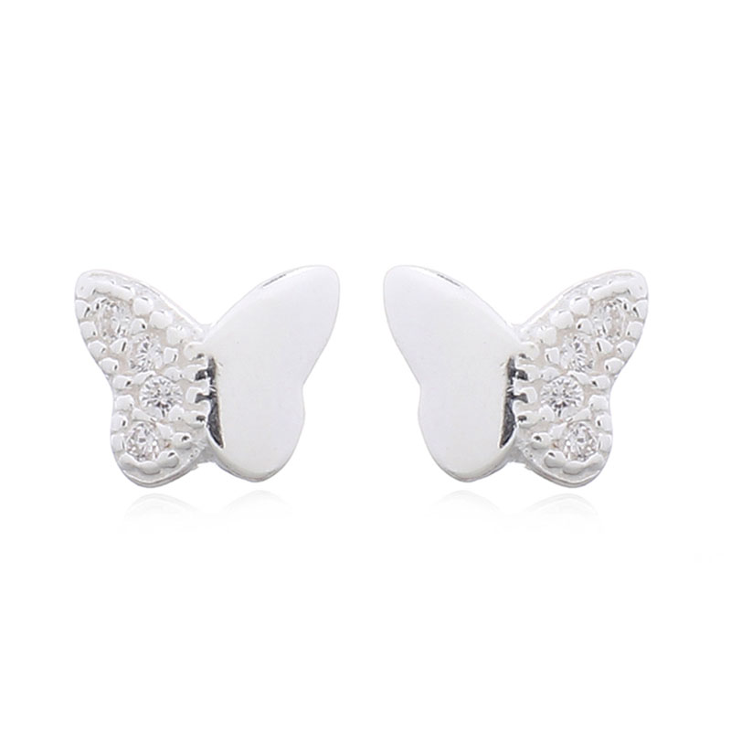 Showcasing mini butterflies filled with sparkling white cubic zirconia, these earrings add a charming touch to your collection. Perfect for retailers focusing on feminine styles, they appeal to a diverse audience.