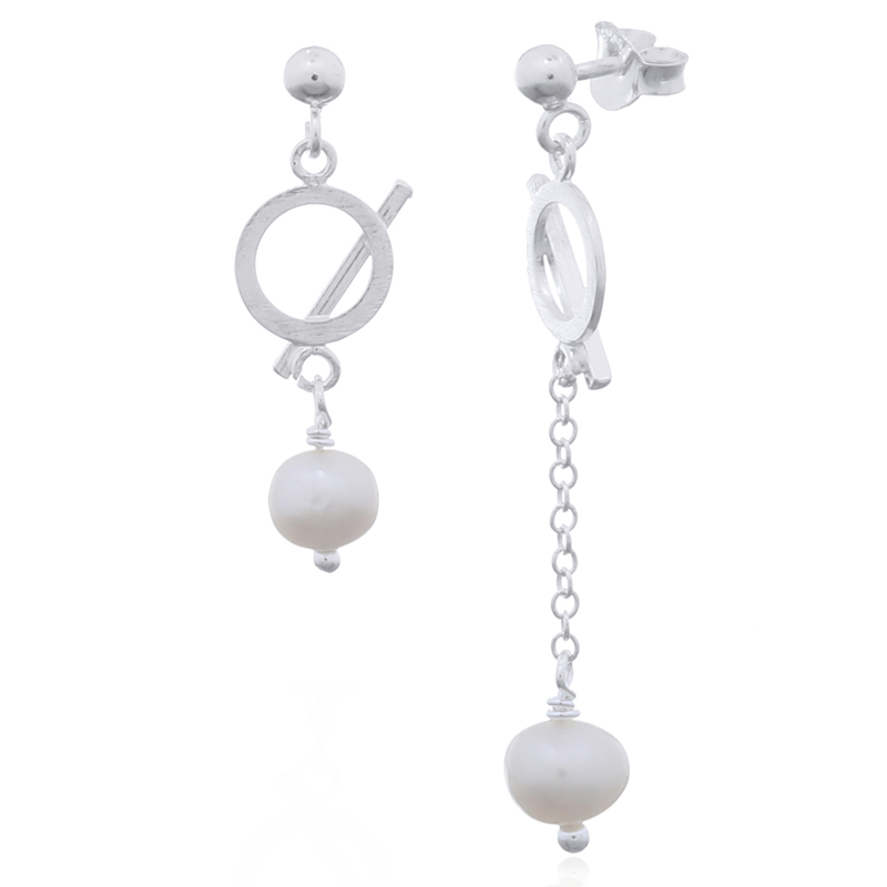 These mismatched stud earrings combine open circles and bar designs with freshwater pearls for a unique, modern twist. Ideal for a standout accessory in your store. Enjoy the advantage of our factory-direct pricing.
