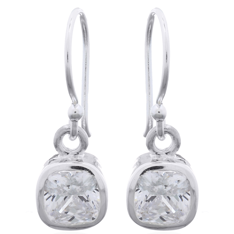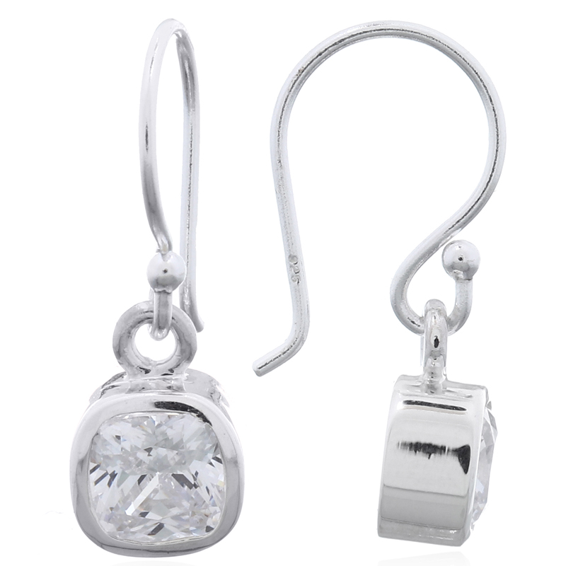 Introduce a sleek, contemporary look to your inventory. These 925 sterling silver dangle earrings feature a minimal open cube charm with a single Cubic Zirconia nestled inside. A stylish and wholesale-ready design.
