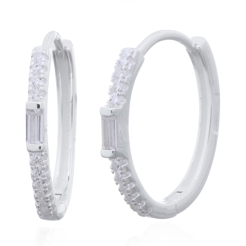 With a rectangular clear CZ stone, these oval earrings blend modern style with classic elegance. Their hinged feature ensures a comfortable fit for any occasion. Stock these must-have earrings to give your customers a dazzling option that stands out!