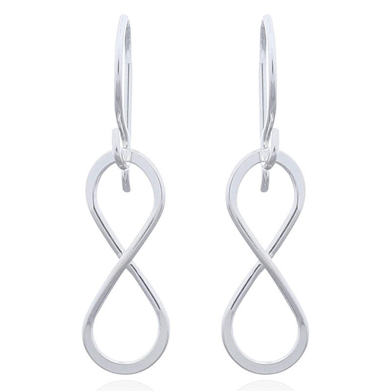 The concept of eternity is a very popular one especially when applied to the ideals of love and friendship. This pair of infinity dangle earrings made of Sterling Silver display very symmetrical infinity shapes slightly slanted and twisted.