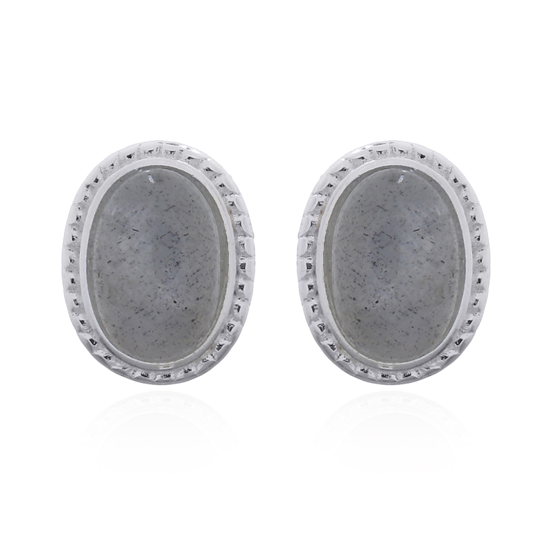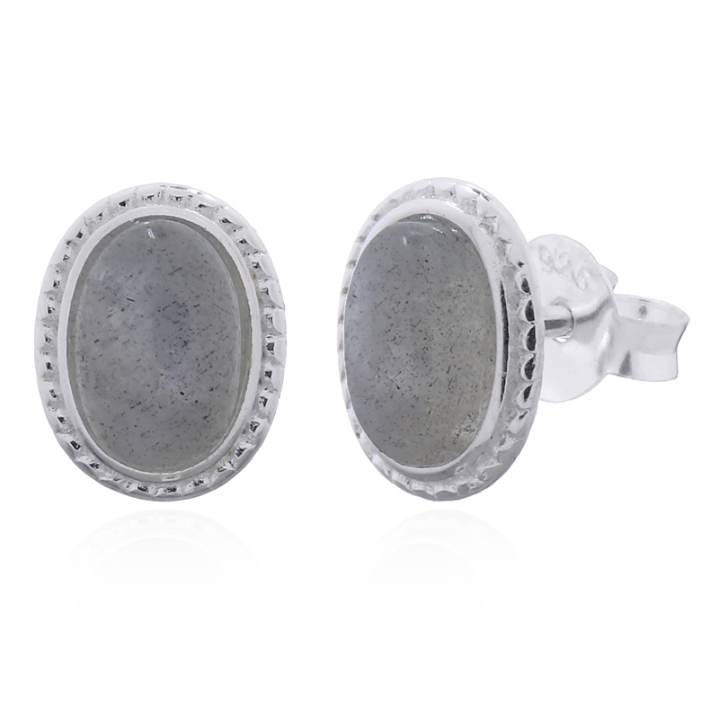 Crafted from high-quality 925 sterling silver, these stud earrings showcase oval rainbow moonstones securely held in serrated bezels. Their shimmering iridescence and sleek design make them ideal for retailers offering refined, eye-catching gemstone accessories.