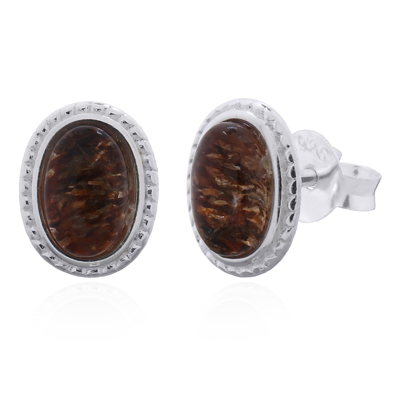 Crafted from high-quality 925 sterling silver, these stud earrings showcase oval Rutilated Quartz securely held in serrated bezels. Their shimmering iridescence and sleek design make them ideal for retailers offering refined, eye-catching gemstone accessories.