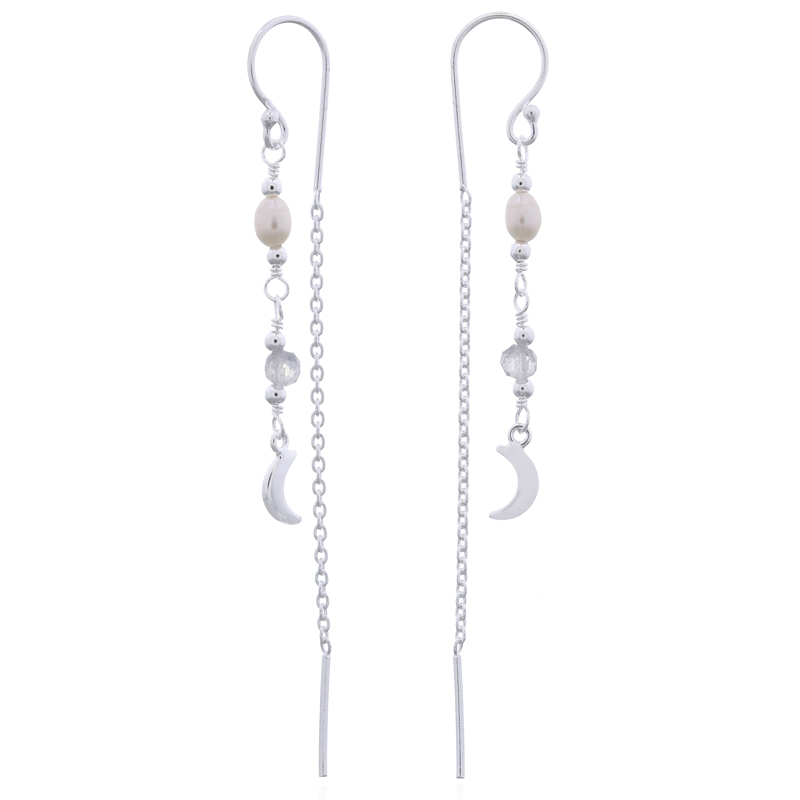 These 925 sterling silver thread earrings showcase a captivating row of freshwater pearl and labradorite balls for dynamic movement and sparkle. Ideal for retailers wanting sophisticated, gemstone-accented pieces that elevate everyday looks with natural beauty and flair.
