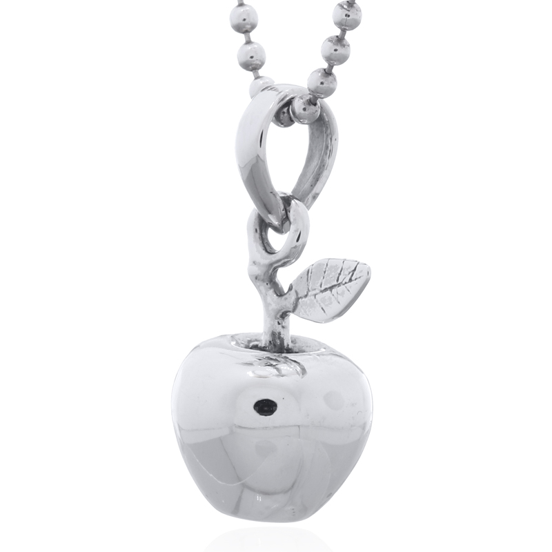 This delightful apple is beautifully completed by the stem with one fluted leaf attached adding an authentic feature to this Sterling Silver apple pendant. This is a gorgeous petite jewelry that appeals from mac fans to mature women that like this apple from silver paradise a lot.