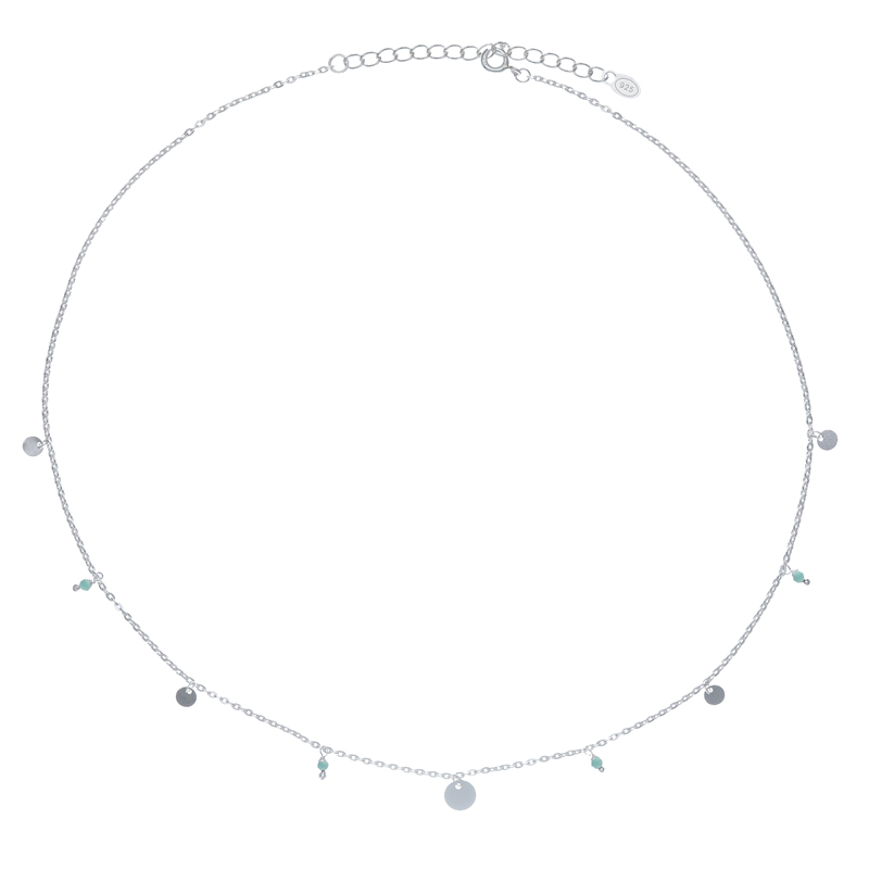 Chain is decorated with the silver discs and amazonite stone in sphere shaped.