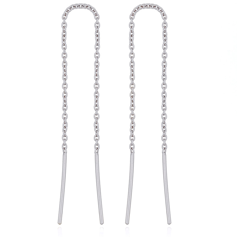 Gorgeously long Threader Earrings crafted with a Sterling Silver spiga chain and wire on the ends for easy threading. Fine and delicate these earrings accentuate with a hint of shining silver the flow from the earlobe in a silvery line and are very popular with the younger generation. Length can be adjusted to super long depending how far the chain is pulled through the ear.