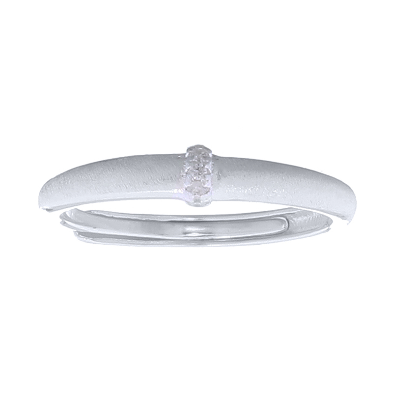 This sleek 925 sterling silver adjustable ring features a brushed matte finish and tiny cubic zirconia stones set in a delicate channel. Ideal for retailers seeking versatile, modern jewelry with subtle sparkle and refined craftsmanship.
