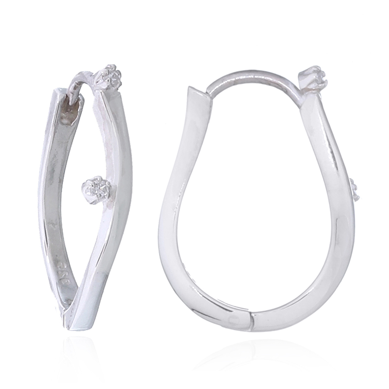 Capture attention with these masterfully crafted U-shaped hoops in polished 925 sterling silver. The unique geometric curve, accented by delicate Cubic Zirconia clusters, offers a contemporary flair that stands out in any display. A must-have, high-margin addition for retailers seeking modern, everyday luxury.