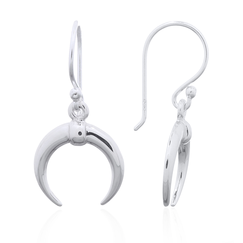 Crescent moon dangle earrings in sterling silver provide a celestial touch to any collection. Their elegant design enhances any outfit. Experience our easy shopping process and factory pricing benefits.
