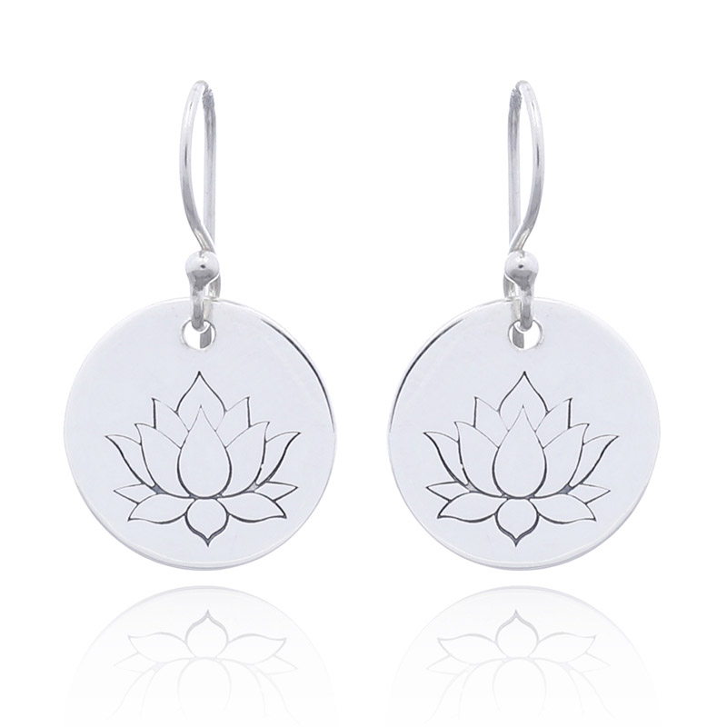 Highly polished silver disc is engraved the lotus in black and lustrous on plain disc. Lotus flower featured the purity of the mind.