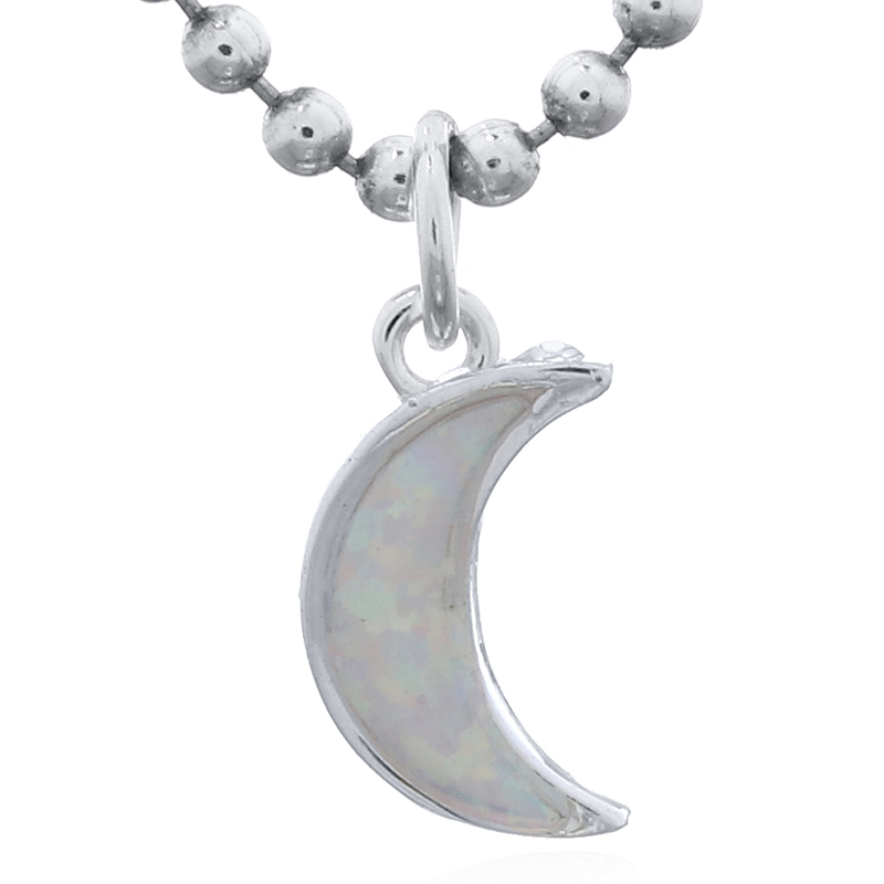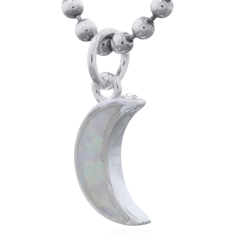 Offer this stunning 925 sterling silver pendant featuring a bezel-set synthetic opal within a crescent moon design. Ideal for retailers targeting customers who love mystical, luminous accessories with timeless appeal.