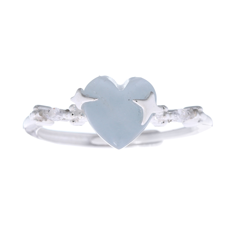 This 925 sterling silver adjustable ring features a heart-shaped aquamarine gemstone held by unique star-shaped prongs. Accented with tiny sparkling cubic zirconia, it combines celestial charm and vibrant elegance, making it perfect for retailers seeking eye-catching, versatile gemstone rings.