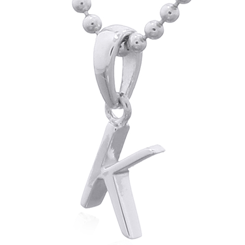 This sleek pendant features a capital letter “K” crafted in 925 sterling silver. Its minimalist design makes it ideal for retailers seeking timeless, personalized pieces that appeal to customers looking for initial jewelry with modern elegance.