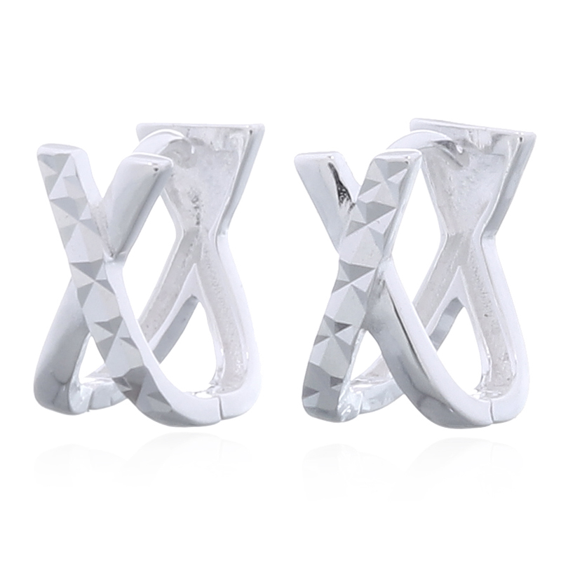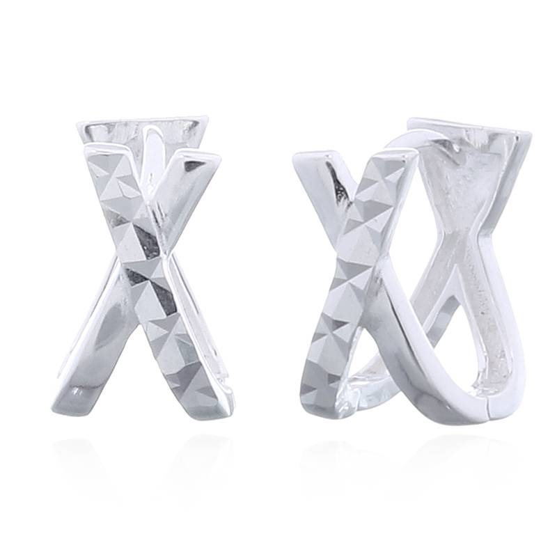 Elevate your collection with these stylish 925 sterling silver hoops, showcasing a unique X design and textured faceted finish. Designed for retailers targeting customers who love modern, edgy accessories with sparkling detail.